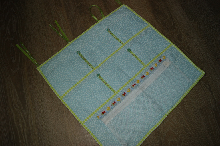 Размер кармашков 55*55 см. Внутри проложила слой синтепона.
