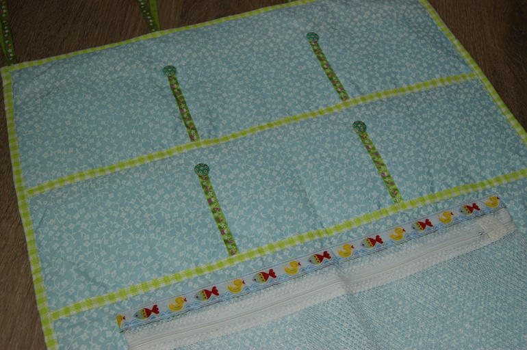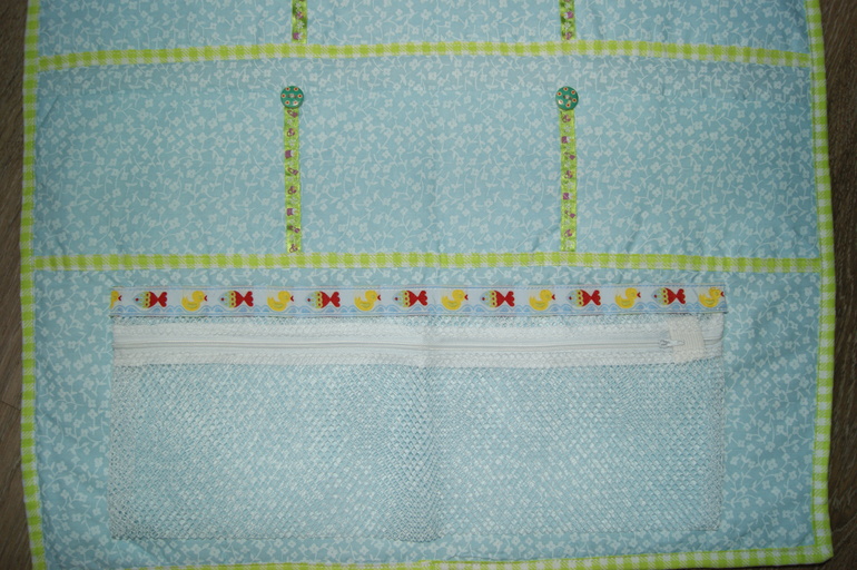 Верхние кармашки для разных разностей, а нижний сеточкой для подгузников.