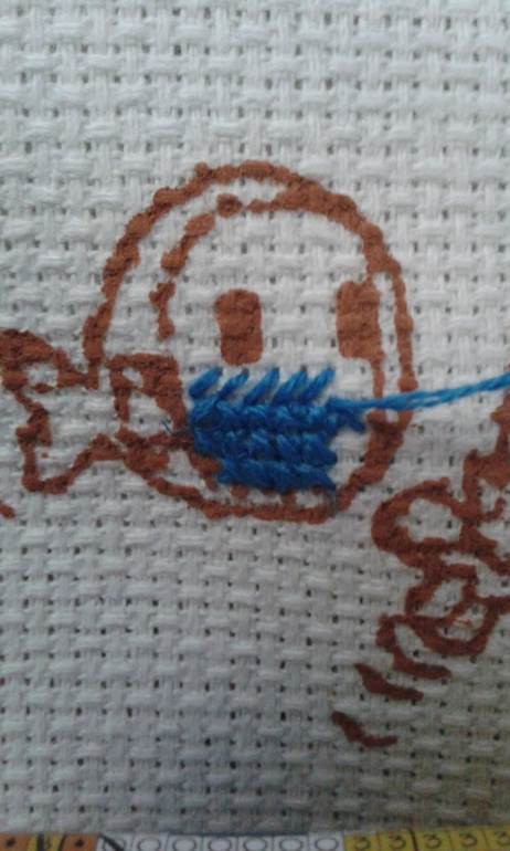 Полностью согласна с советом Ирины. Вышито совсем чуть-чуть. Лучше взять новую канву, сделать сетку и вышивать уже правильно. Результат будет лучше.