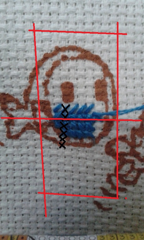 контур заводской.попробую сетку начертить(простым карандашом?) а вышивать одинарной нитью?ошиблась на ряд,нижний ряд другого цвета,а в этом цвете ошиблась всё таки на 1 ряд.спасибо!
