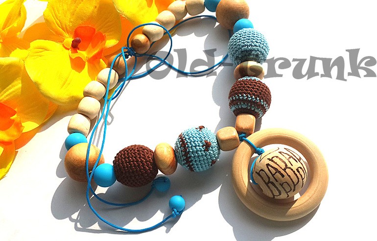 Бижутерия для слингомам. Слингобусы. Грызунки.Для Варвары с можжевельником, силиконом и деревянным кольцом.