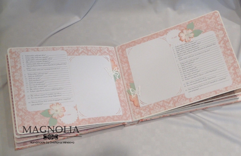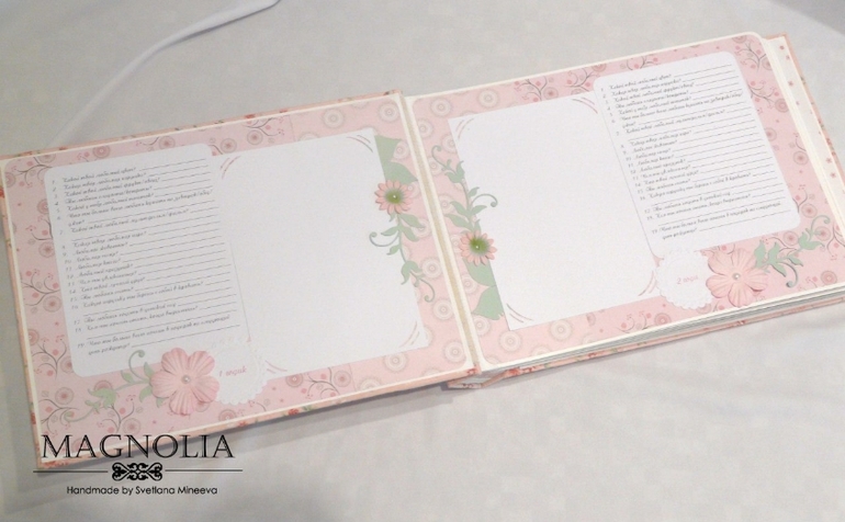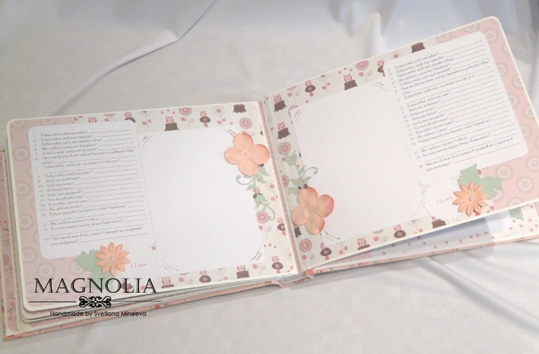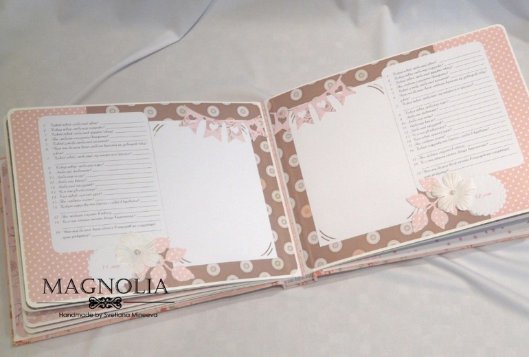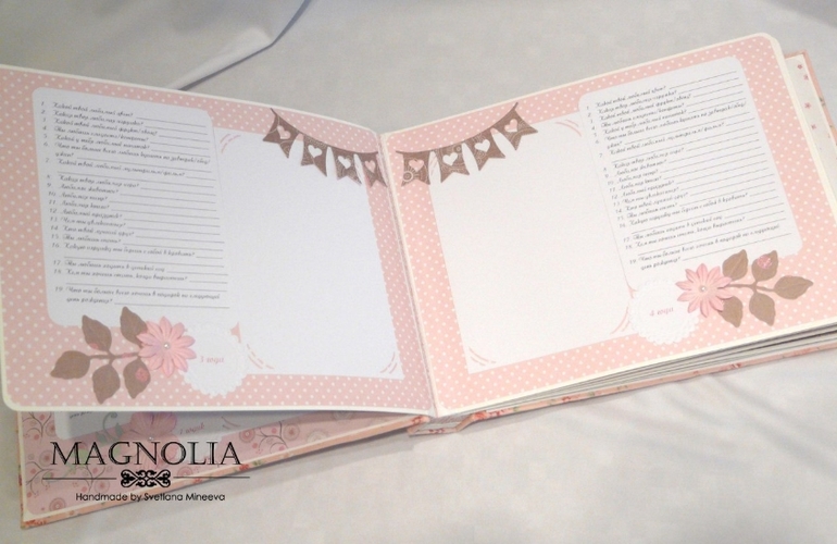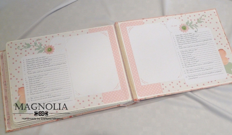 Альбом-анкета от 1 года до 16 лет, формат страниц альбома 20*26 см . 8 разворотов (16 страниц), на каждой странице место для фото и поле с вопросами
