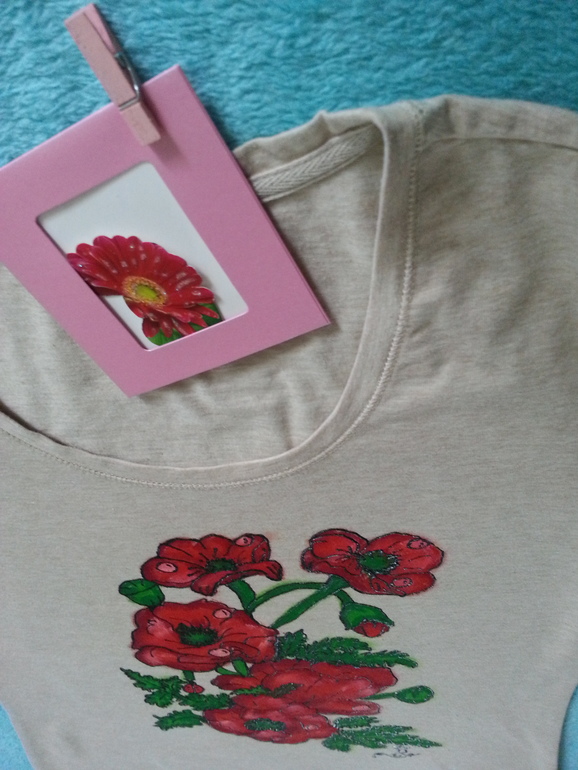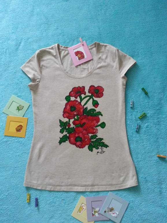 И я решила расписать вытворить себе футболочку с маками. Проба пера так сказать.....