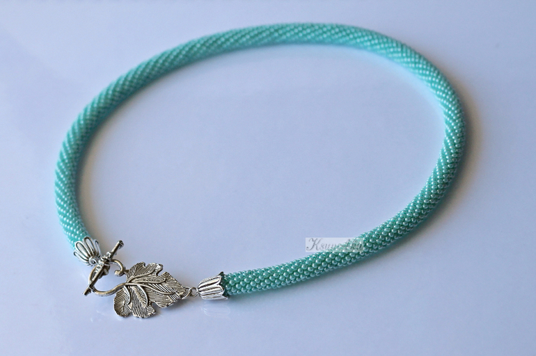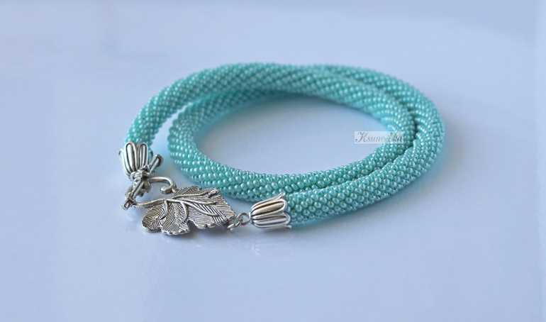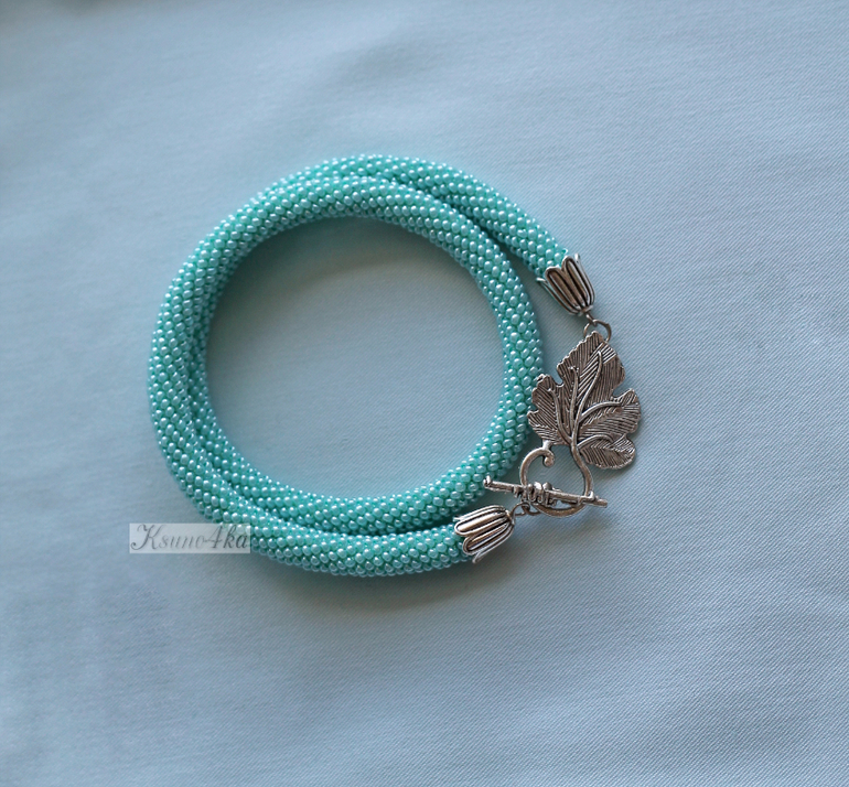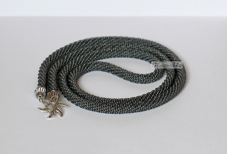 Для работы использовались полиэстровая пряжа, чешский бисер, крючок №1, фурнитура под античное серебро. 7 бисерин в ряду. Длина 42 см.