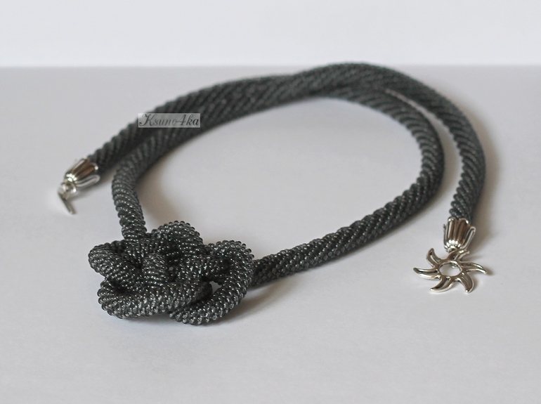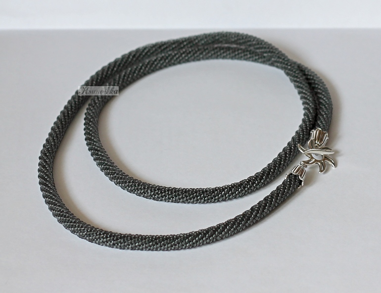 Жгут на 7 бисерин, связан из хлопковой пряжи, использован чешский бисер №10, крючок №1, фурнитура под античное серебро. Длина 92 см.