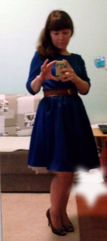 Ну вот ,все мучения позади)) Сшила я себе платье)) 2 дня шила. Ехать надо,все бегом-бегом)) Но вроде довольна))Извините за фото,хотелось показать))