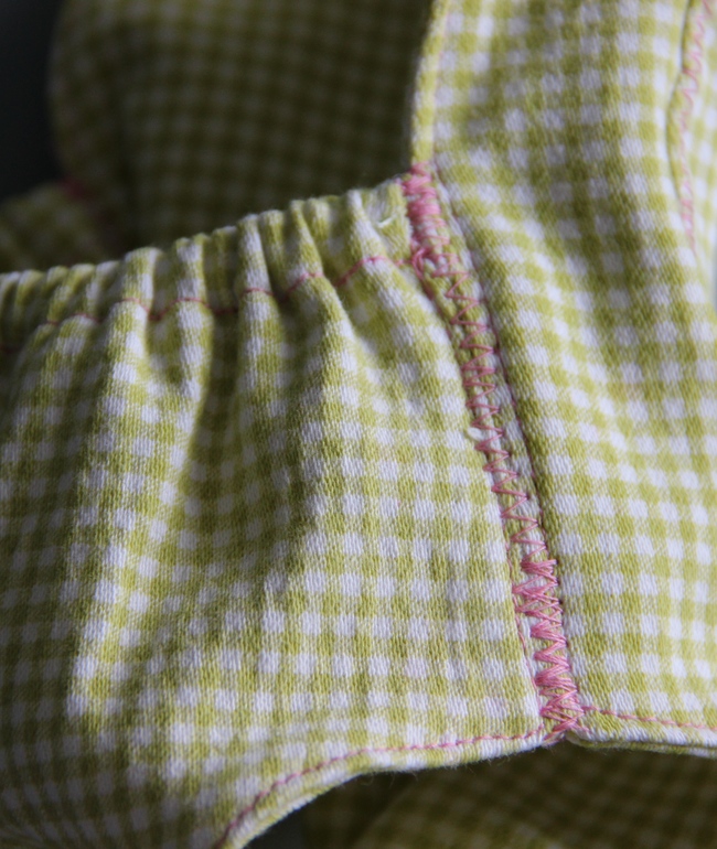 Затем сшила обе детали (ткань типа джинсы, поэтому уплотнитель я не делала), не забыв вшить лямки.