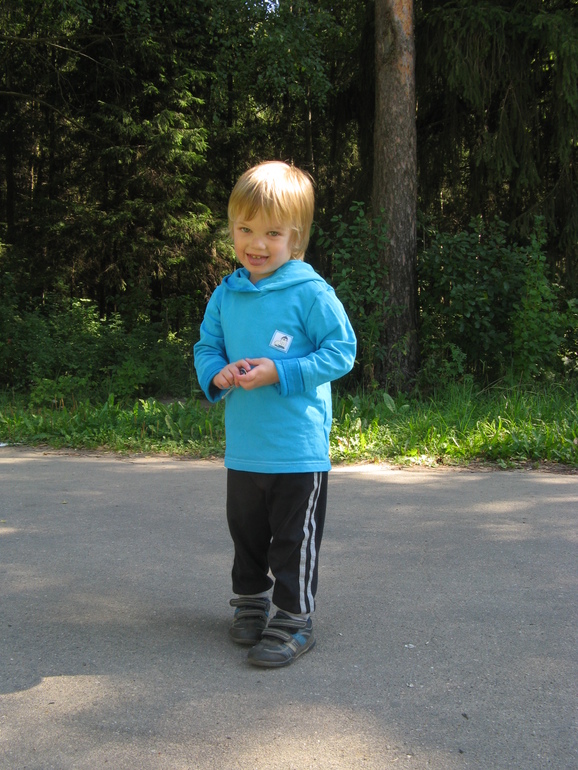 Выкройку брала из оттобре, размер 98, немного большемерит. Шила из футера 2-нитки. Сынуле понравилась.