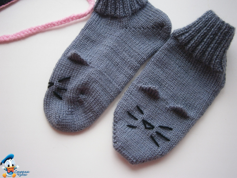 А из остатков уже вышли носочки "Мурки" с усиками и объемными ушками.