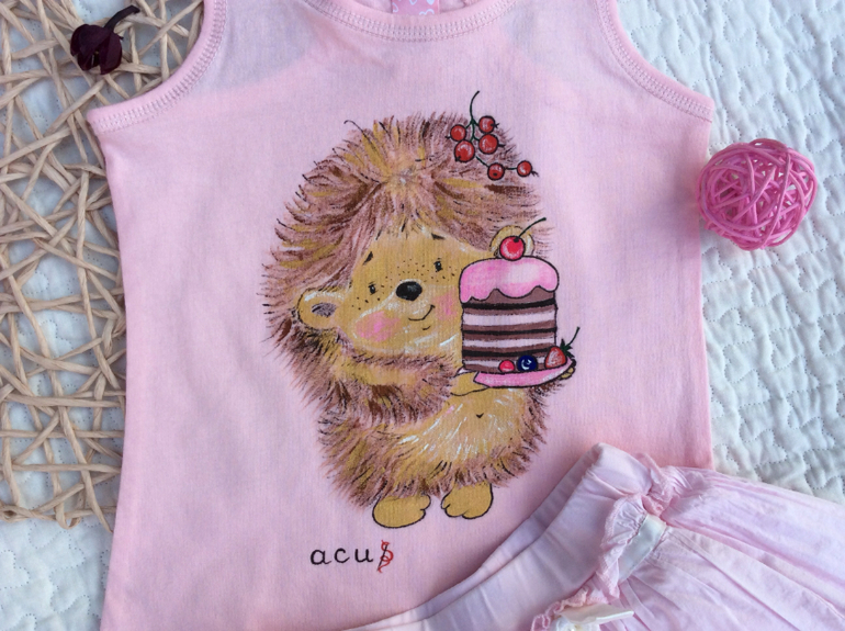 А так же представить последнюю футболочку, расписанную акриловыми красками. Это уже точно последняя, потому что весь запас закончился:)) и хочется сменить рукодельное направление хотя бы на время:)