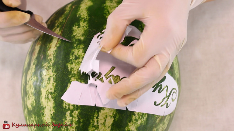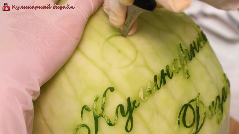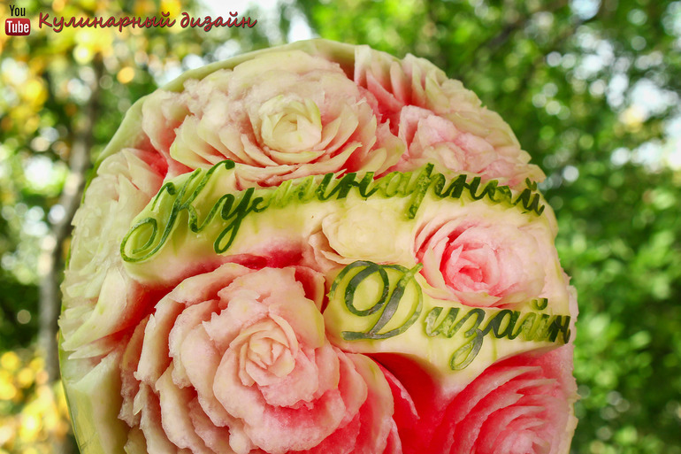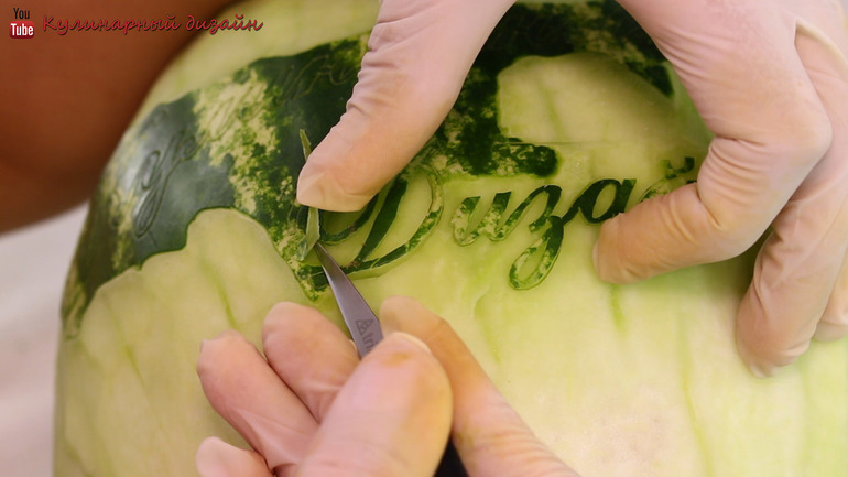Мастер - классы, совместный пошив, он-лайны и другие рукодельные процессы (читаем правила!)Карвинг из арбуза, наносим надпись и вырезаем цветы.