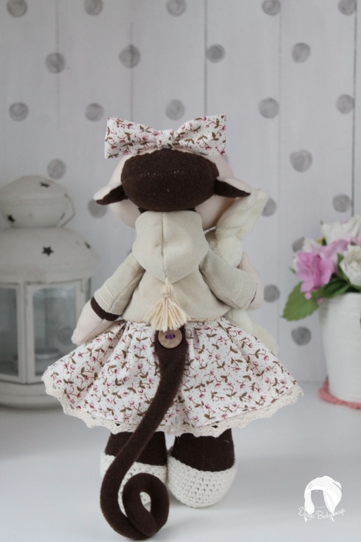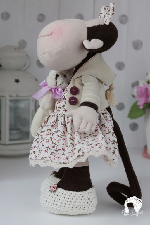 Это моя первая обезьянка, ростиком она 27 см, рисовала выкройку сама и до сих пор над ней работаю :) Надеюсь вам понравится моя малышка :)