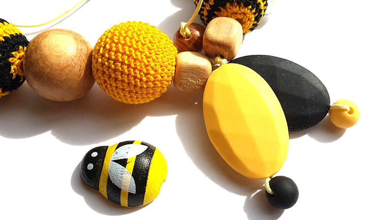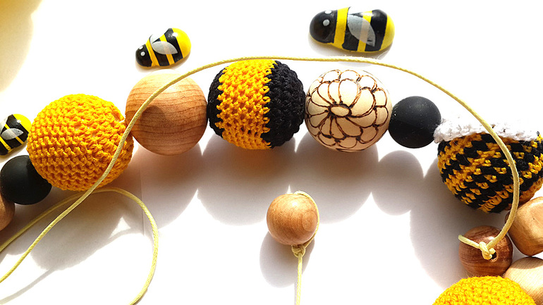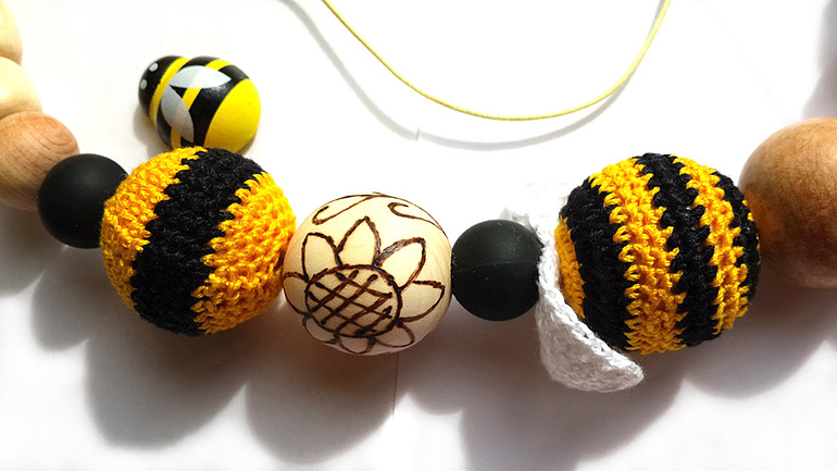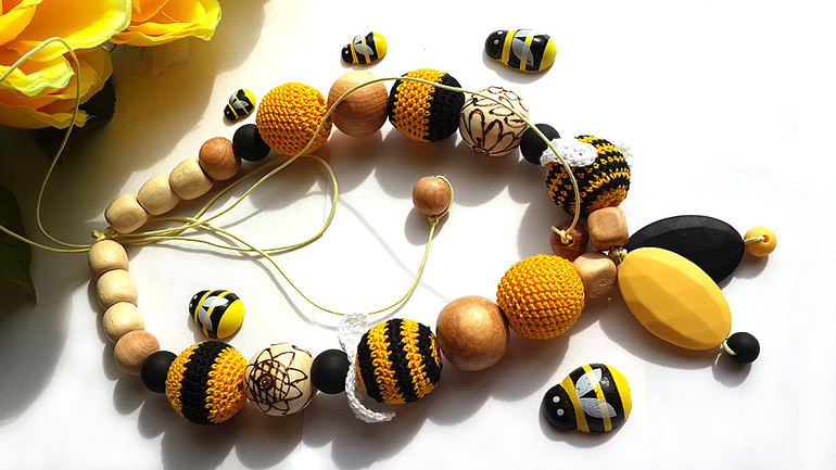 Бижутерия для слингомам. Слингобусы. Грызунки.Яркий и эксклюзивный аксессуар с очаровательными пчёлками и цветочками.Прям жалею, что мы уже не в теме, выросли