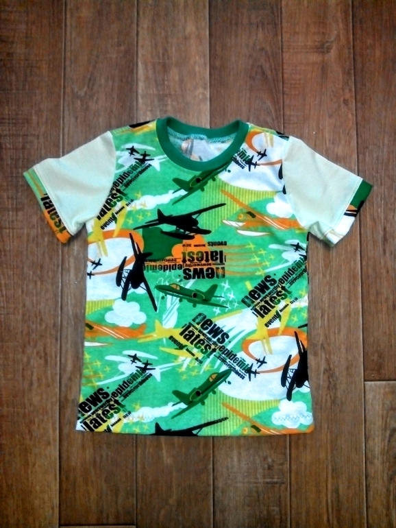 Пара футболочек (я в восторге от этих самолетов изрезала всю тканюшку, остался небольшой квадратик). И шорты из джинсы, джинса очень мягенькая и тоненькая.