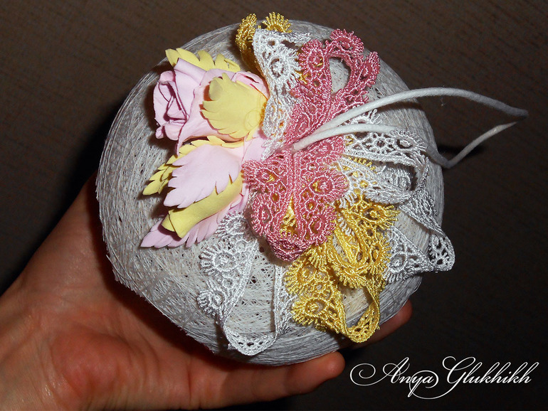 Да всё просто!!! шар из ниток, цветы из фоамирана, немного кружева и фантазии и вуаля ;-)