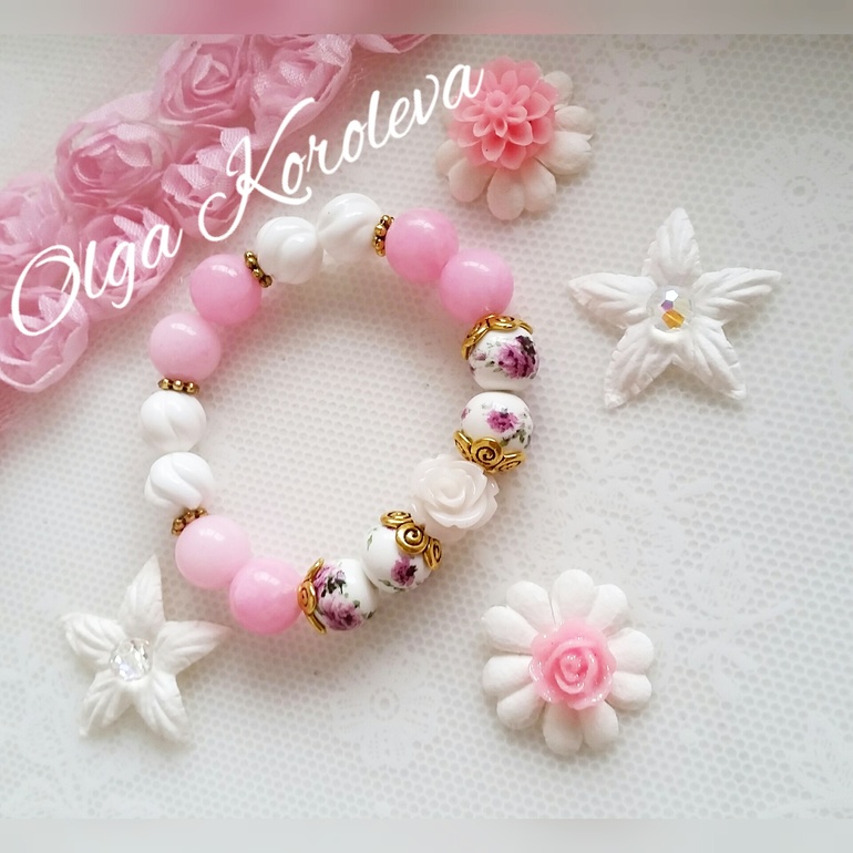 Бижутерия для слингомам. Слингобусы. Грызунки.Вот такая нежная красота для 5-летней девочки: резной агат, розовый тонированный агат, керамические бусины с цветочным принтом и резная роза из коралла.