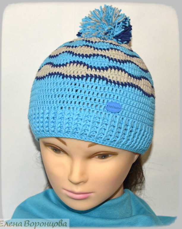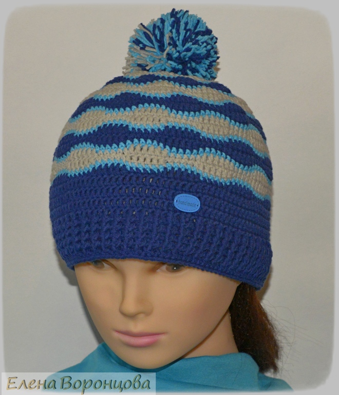 3.Шапочка "Волна 2". (размер 52-54), пряжа Джинс.