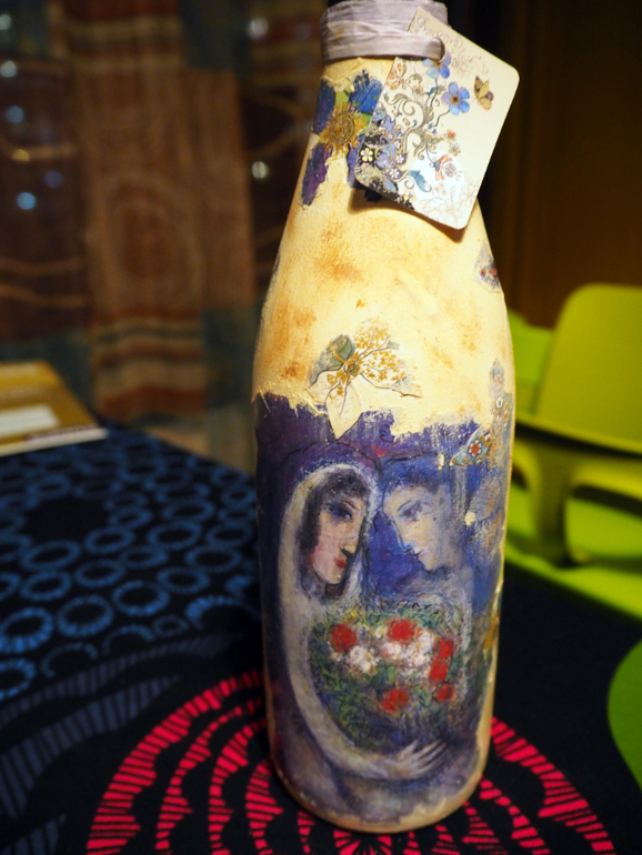 О существовании каких-то специальных салфеток или о том, что можно именно бумажную салфетку использовать я узнала слишком поздно, поэтому пошли сложным путем - методом истончения фотографии =) Это причем получилось не так уж плохо (см. лицевую сторону, Марк Шагал). Особенно не удалась задняя сторона бутылки, где я истончала открытку - так как никак не получилось сделать ее достаточно тонкой, рвалась сразу она если пыталась откарябать еще бумаги. Ну в общем как-то так =)