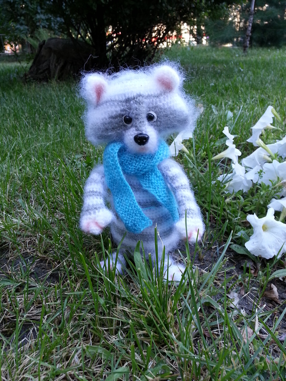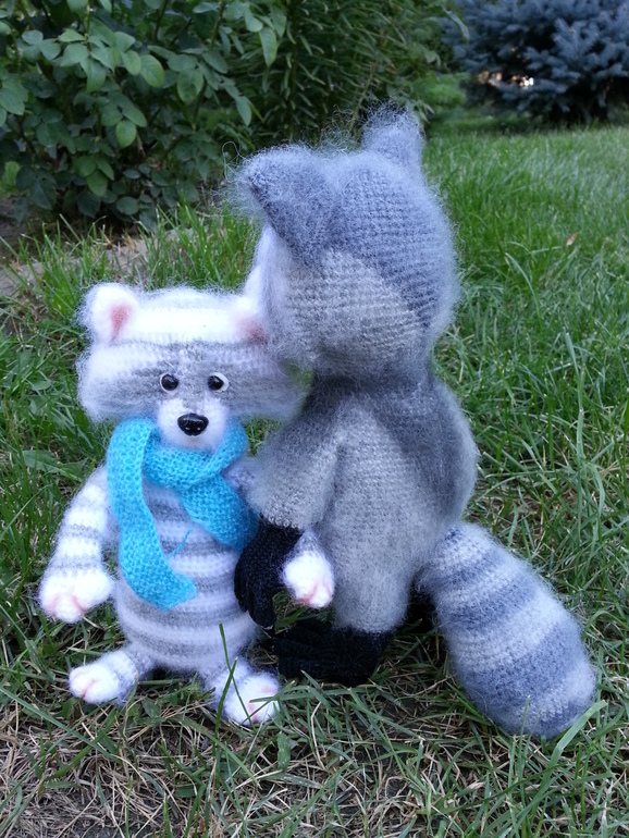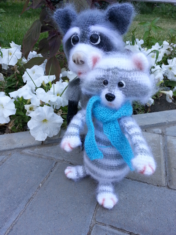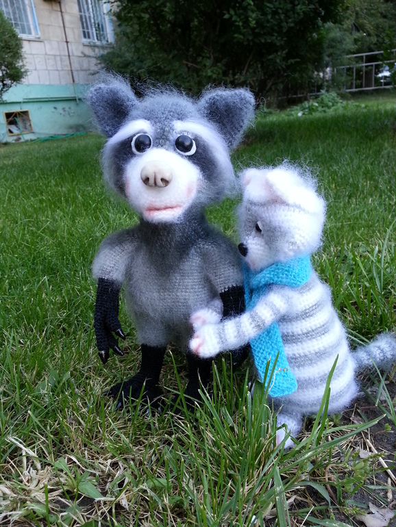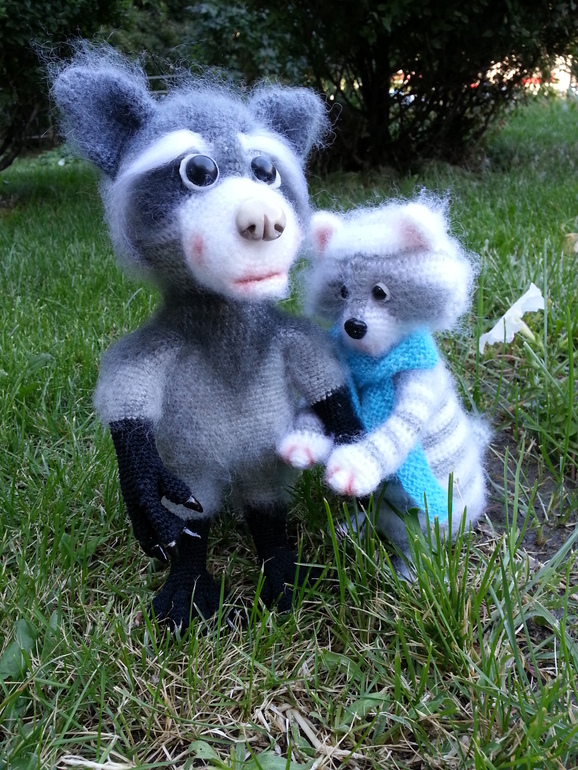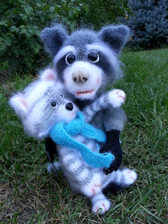Игрушечный мир - животныеСвязаны крючком. Nako "Mohair delicate". Большой енотик высотой 28 см, полностью на проволочном каркасе, все пальчики в том числе