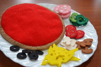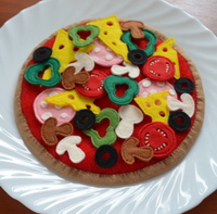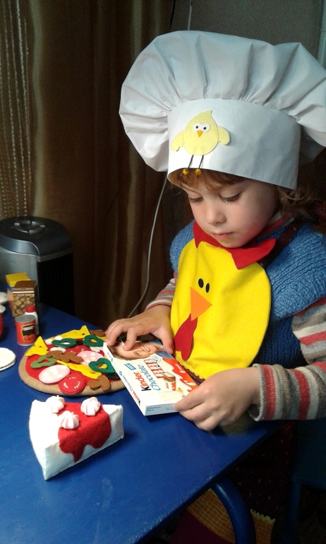 На день рождения для любимой крестницы было решено дарить кассовый аппарат....Ну такой знаете, чтоб с деньгами, кредитками, калькулятором. А как дополнение к подарку решила сшить ей фартук, колпак и немного "фетровой еды", чтобы можно было поиграть в "ресторан".