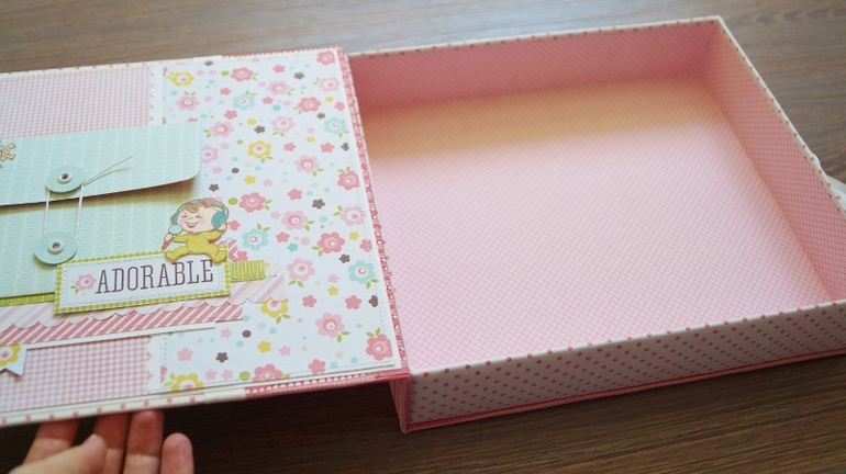 это большая такая коробка для хранения самого наборчика. В основе 2 мм картон, вся мягонькая, обтянута хлопком, в рамочку можно, даже нужно вставить фото)