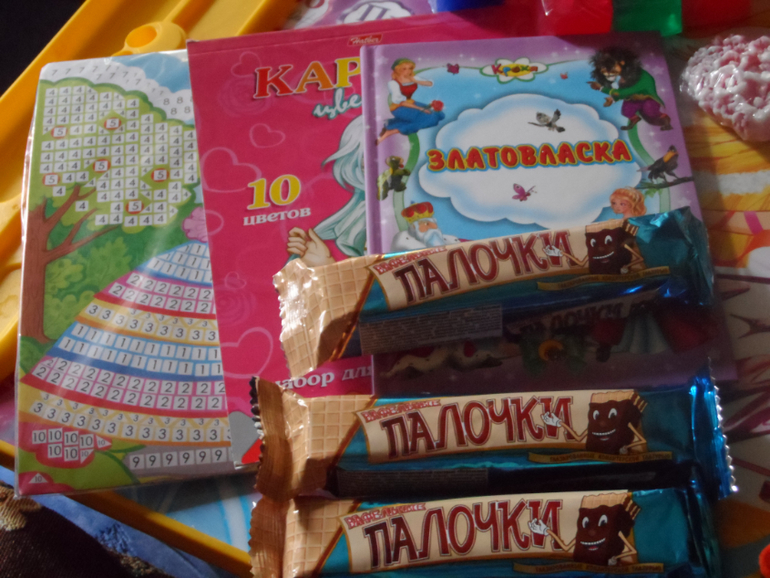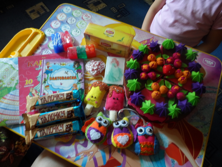за классные подарочки!!!!! Посылочку получили после первого дня прибывания в садике, радости нашей не было предела!!!!