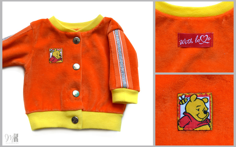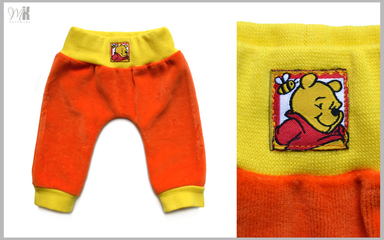 Нашивка с мордочкой Винни Пуха, украшает пояс брючек.