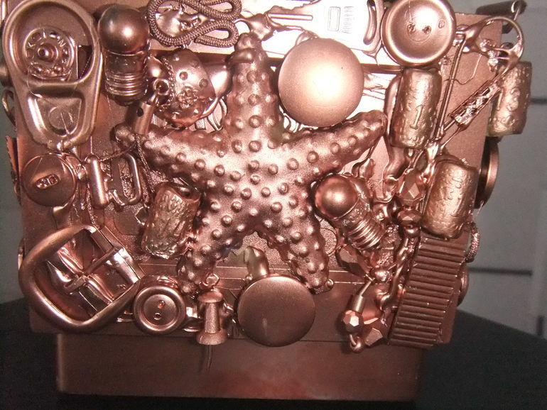 можно обмотать верёвкой или шпагатом, можно обклеить пуговицами или старыми монетами или любыми ненужными мелочами, например так
