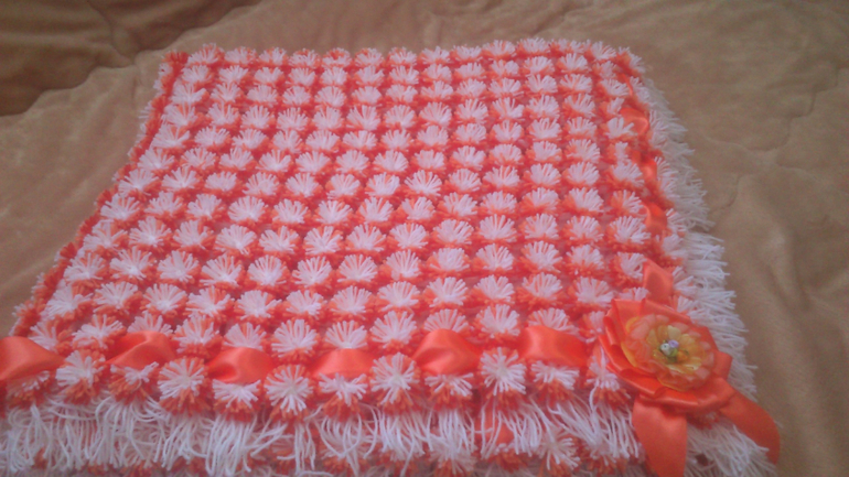 Декор, витражи.Приглянулось мне сделать плед из помпонов. Долго собиралась. Изучала, мечтала, придумывала, высчитывала, и вообще "долго запрягала"! Но и поехала не быстро! :) Сыночке после прививки было плохо, поэтому этот пледик делался две недели. Размер 116*116 с усадкой 110*110 количество помпонов 28*28. Бант сделан наполовину мною. центр банта от резинки для волос. Прошу от вас правды и только правды. Если что-то можно сделать лучше - я сделаю. Так как хочу всем всем всем этих пледов навязать! (все подруги с детками, а одна так вот на прошлой неделе родила!) Следующий плед будет для нее. А сейчас вот.... фото под катом