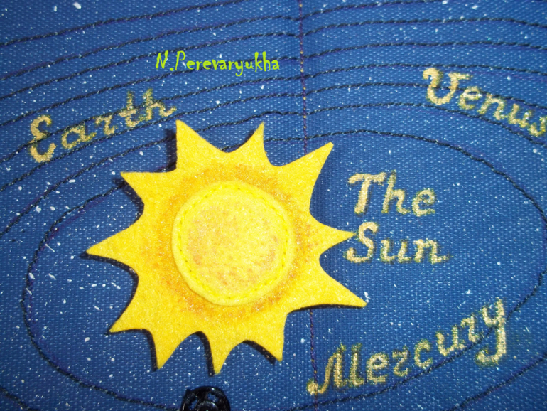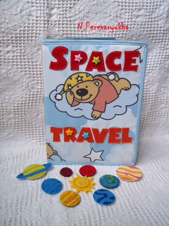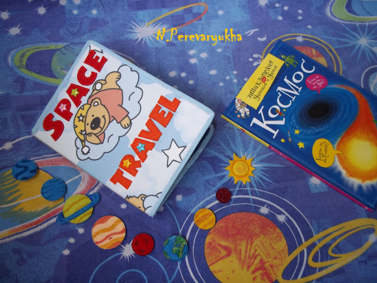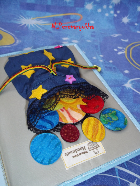 Книжка шилась для маленького любопытного полиглотика. Вместе с мамой он будет изучать английский, и вот одна из тем- планеты солнечной системы! Ну и чтобы это не было совсем скучно, решила отправить его в путешествие