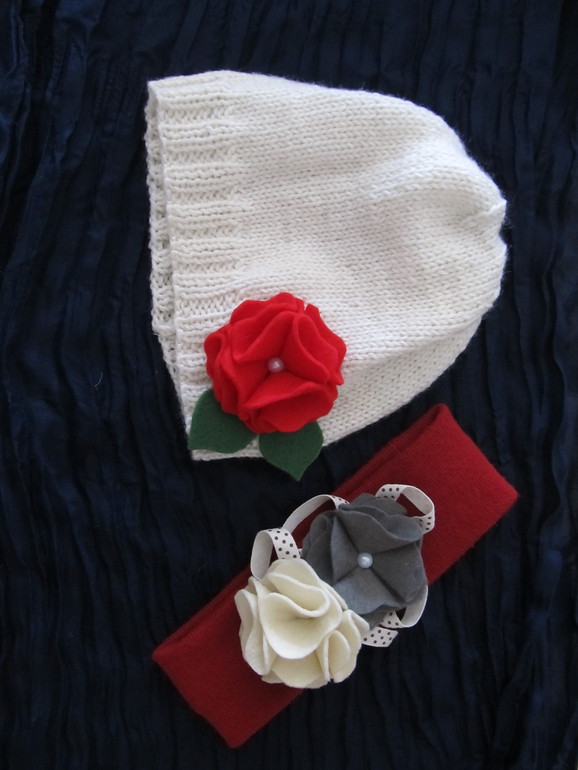 ФетрСшила, связала, в общем "нарукоделила" к теплой осени для старшей дочки. Цветы из фетра делала впервые, потому покритикуйте, что не так. Увлекательное занятие, затягивает) Красный цветок сделала съемным на кнопке, чтобы не полинял на шапку при стирке. Розовую шапочку с зайчиком сшила из свитера, который уже давно не ношу.