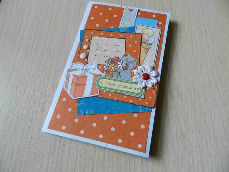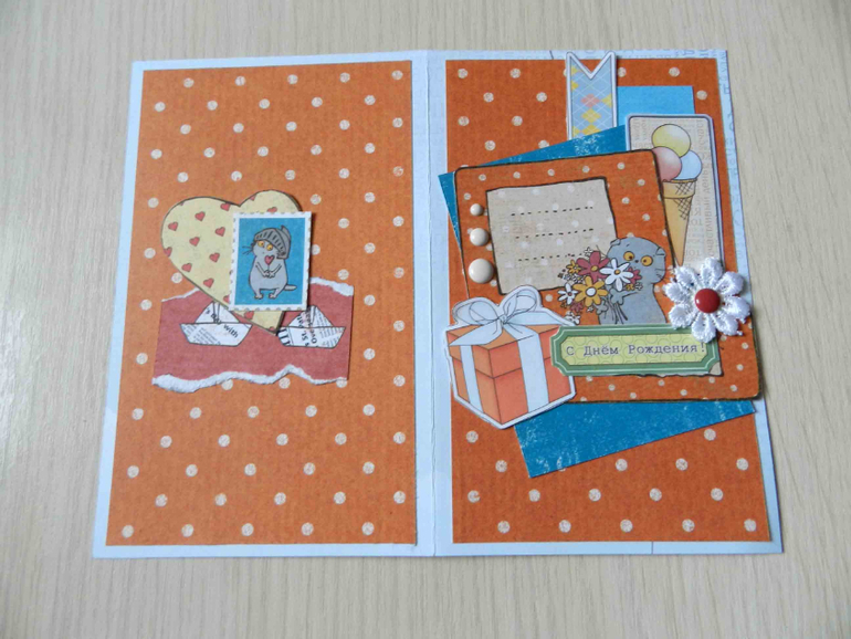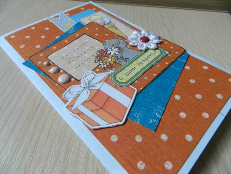 СкрапбукингОх, как давно я не делала открыток..А сегодня у племяшки день рождения. Хороший повод. Сделалась быстро, я прям влюблена в бумагу с милым Басиком! Млею от него. Смотрите, какая получилась))))