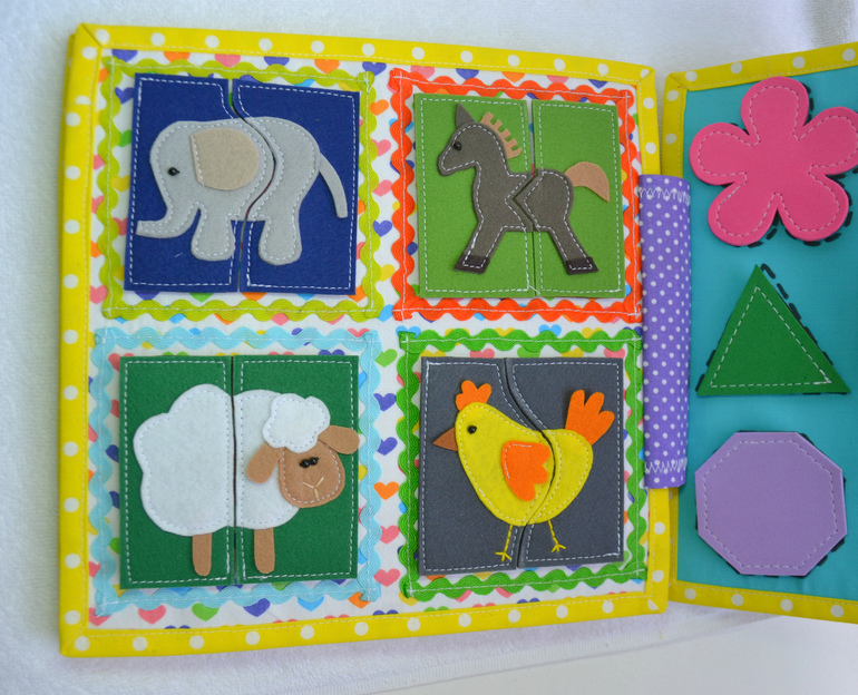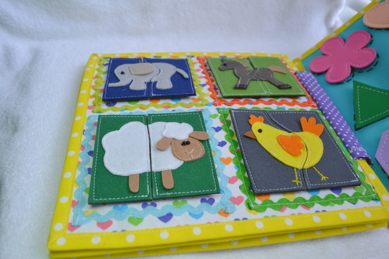 Развивающие игрушкиПокажу еще одну развивающую книжечку. Размер 23*23 см. Съемных деталек-49 шт.