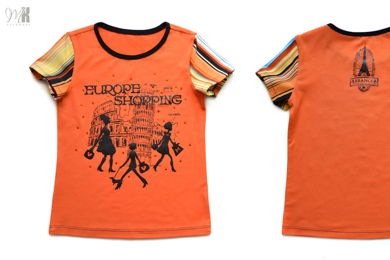 Оранжевая кулирка с/л, рукава и отделка горловины - теплое масло.