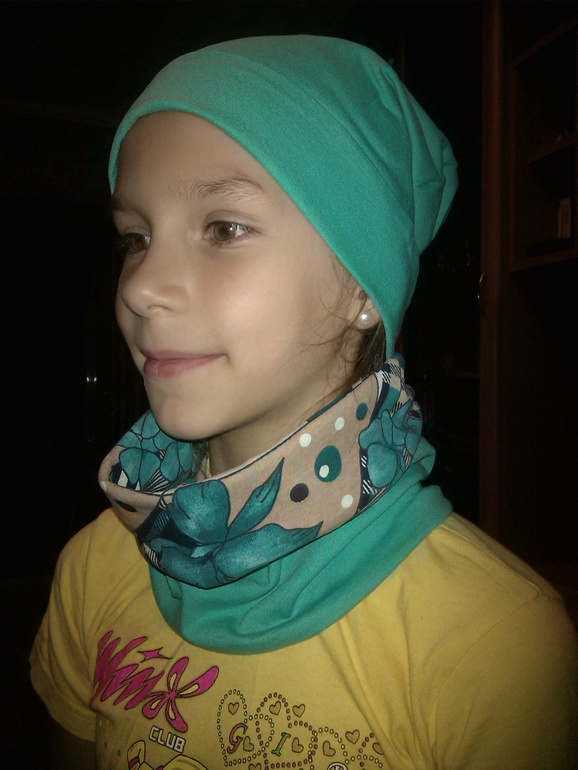 Мария, скажите пожалуйста сколько ткани потребуется на снуд и шапочку на ребенка 5 лет?