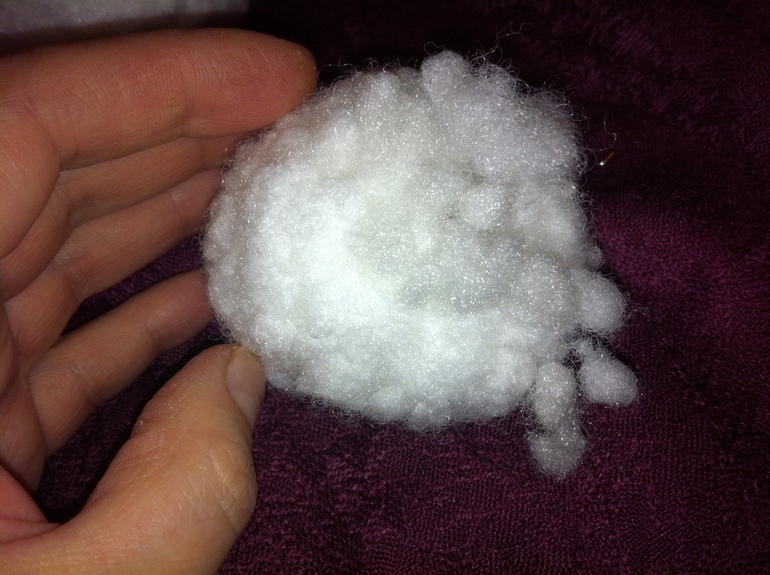 и потом в это отверстие добавить еще наши полиэфирные шарики, уплотняя и обминая их. Если не доберетесь вдруг и где-то опять пустоты померещатся - так можно и с нескольких сторон добавить)).