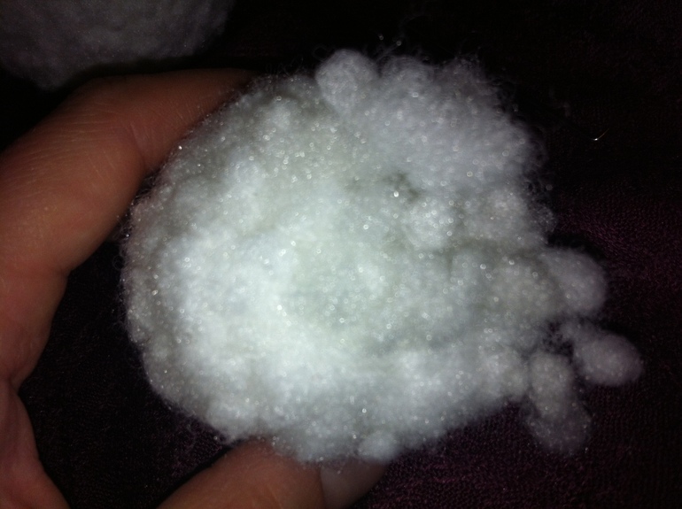 Подробности: материал - наполнитель для мягких игрушек/подушек, главное его состав - полиэфир, типа шарики. Я пробовала и из синтепона и тинсулейта - закончилась пачка полиэфирных шариков и пока не дошла до магазина пробовала из того, что было дома.