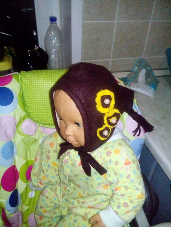 Насмотрелась я на Вас девочки - мастерицы и решила попробовать сама сшить доче шапульку:)))