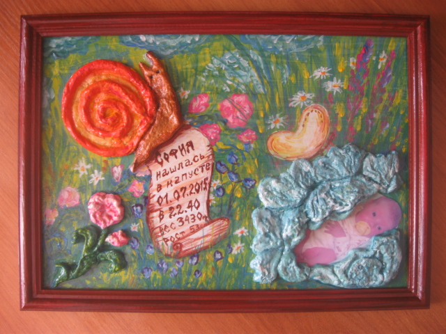 Солёное тесто (ТОЛЬКО ГОТОВЫЕ РАБОТЫ)Вот такая получилась метрика для Сонечки, с элементами из соленого теста.