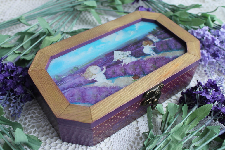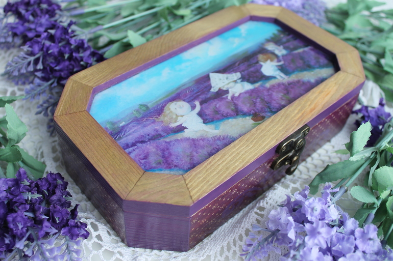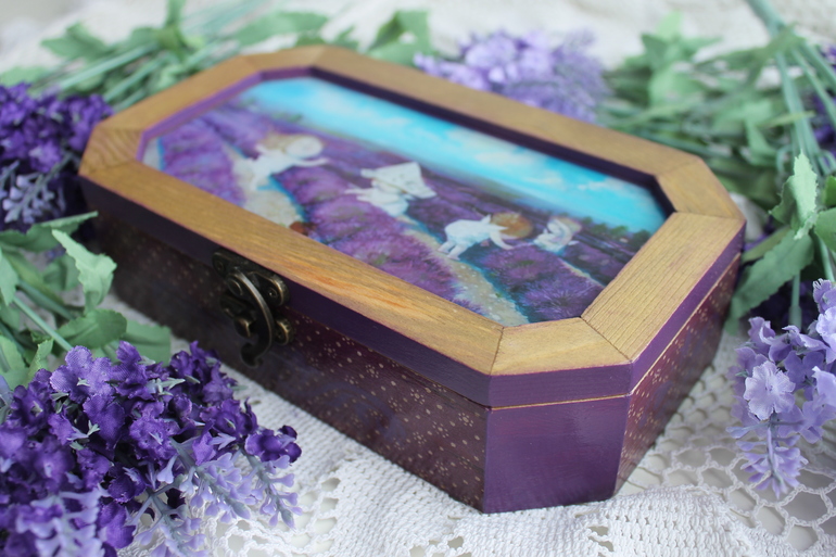 ДекупажКак-то так получилось, что я поймала "лавандовую волну"...Так и родилось сразу несколько работ в одной лавандовой тематике...И вслед за "Ароматной" шкатулочкой покажу вам и эту!!!