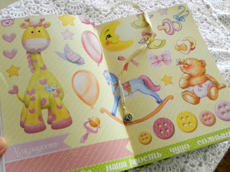 И странички для записей о самых важных первых 12 месяцах, о первом годе жизни малышки, ее успехах, умелках, достижениях))