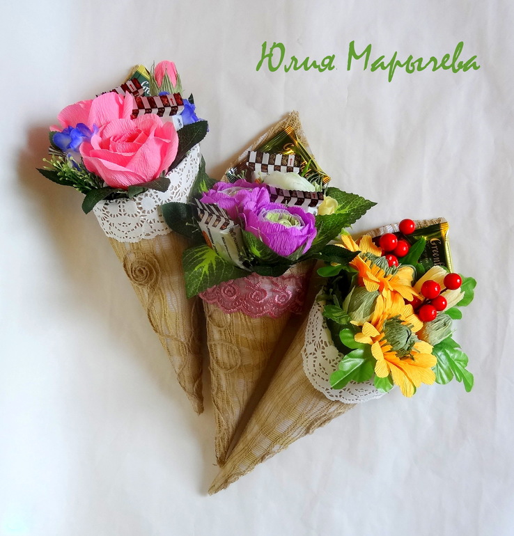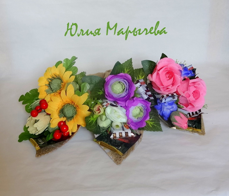 Юля,поздравляю!И первые очень даже ничего для первых))Букет для мамы красивый!Мини-презенты-хороши)Дальнейших творческих идей,времени,средств и сил для их воплощения!