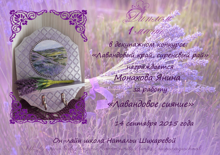 Наверно поэтому у меня довольно много работ с лавандовыми нотками...А я ведь никогда даже не видела этот цветок, да и, если честно, аромата его особо-то не знаю...Но люблю...