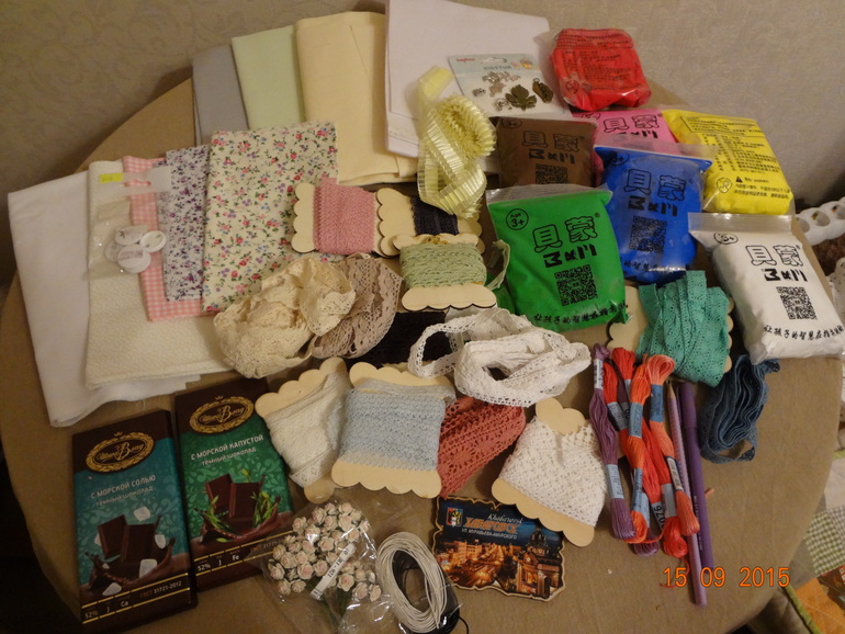 Сегодня мы получили посылку от Алины Алина ,мы не в первый раз обмениваемся,в этот раз опять же мой хомяк в обмороке.... столько всего.... здесь и полимерная глина,дети уже просят лепить,но я пока не решаюсь,надо попробовать...канвы мне на года вперед...и кружева тоже.еще приятные мелочи,ткани,а шоколад такой необычный,вкусный)))уже попробовали. Смотрим сами)))