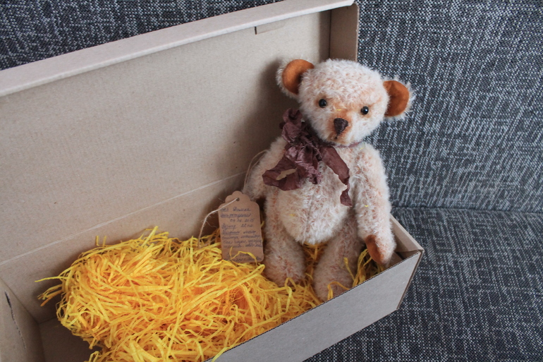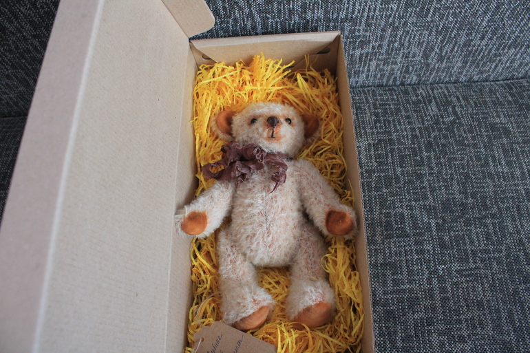 А это для меня. Людочка написала, что этот мимишный медвежонок, такой нежный, суперовский мне и я его никому не даю. Такой он классный, не передать словами. Я счастлива как ребенок.