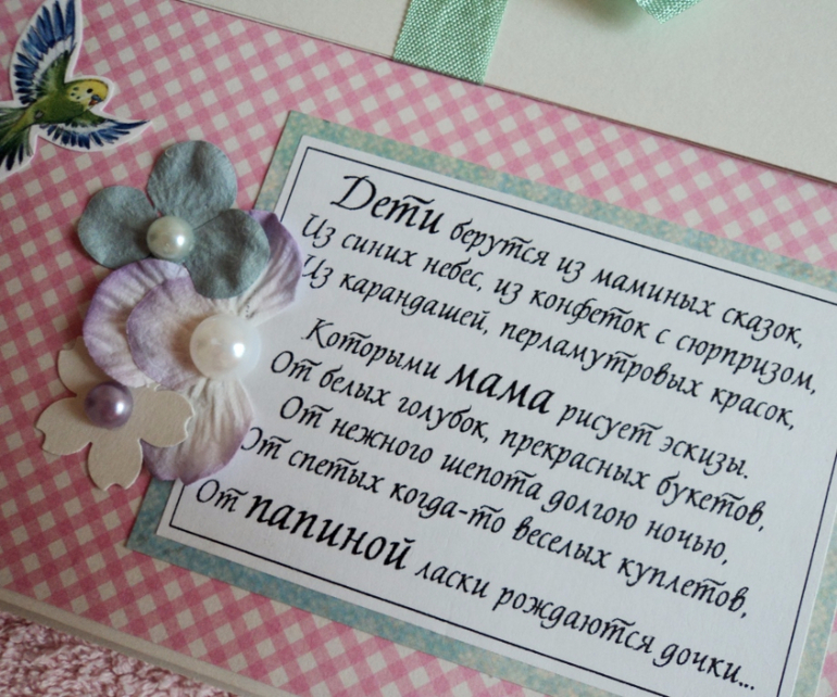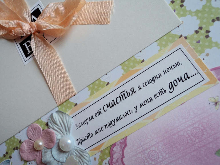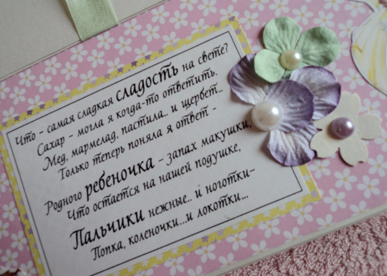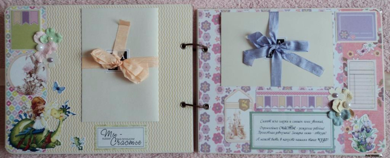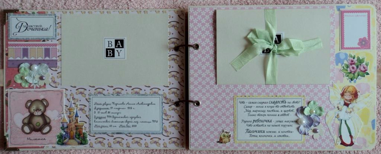 СкрапбукингВсем привет) Я с новым альбомом для малышки Алиночки. Формат 21*26 см, 6 разворотов, вмещает около 40 фото размером 10*15 см. Рождение малышки, первая прогулка, первое купание, первый зубик и первый Новый Год - столько ярких событий можно сохранить в альбоме. Альбомчик наполнен чудесными картинками Марины Федотовой, надписями, стихами, цветочками, жемчужинками. В общем, нежный, воздушный, для настоящей маленькой принцессы. Итак, милости прошу в гости (очень много фото).