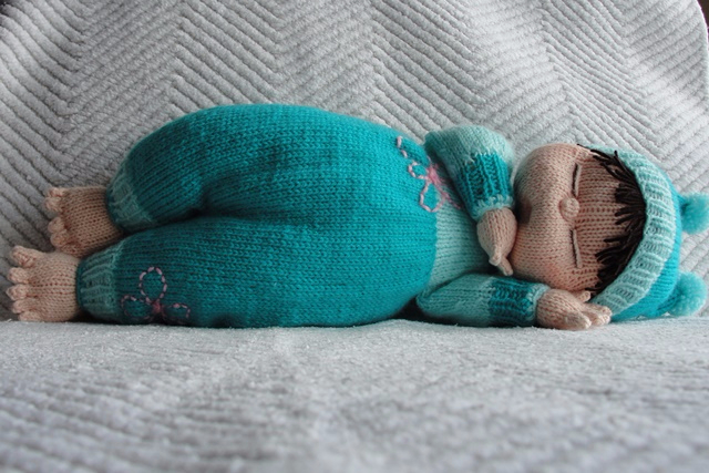 Классненько как. Для любителей одевать-раздевать можно ж всю игрушку телесными нитками связать (чуть-чуть убавив количество петель) да и глазки сделать открытыми если надо. Суперский пупс!!!!!!