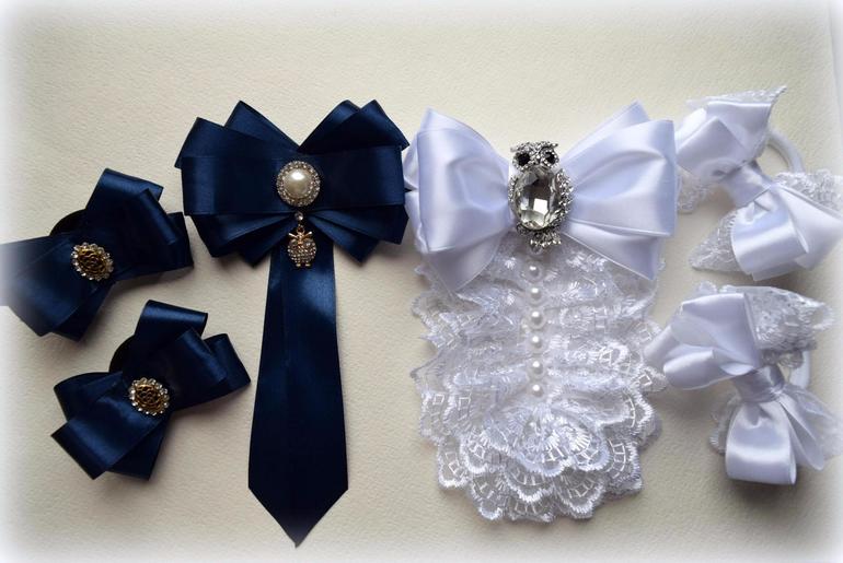 Это для школьниц под серую форму) Там же в комплекте бантики на резиночках)