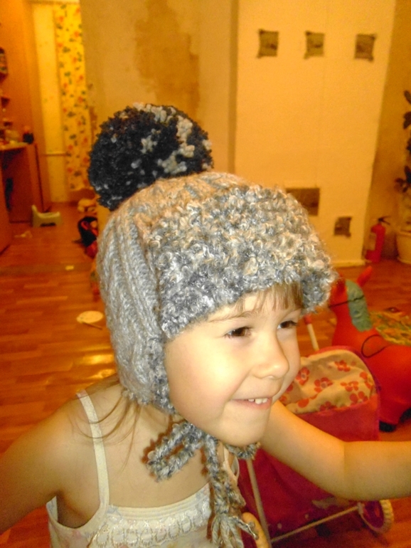 А мне кажется что отворот слишком широкий и уши далеко... А в общем впечатление как от "бабулиной" шапки =) Такие большиииие у бабуль, комкаааастые =))) Да и помпон, конечно, ни к месту. Если б хоть окантовочку где приладить темным, или хоть что-нибудь... Короче, ни о чем. Заказчица явно со своим видением. Заплатила хоть за работу-то?