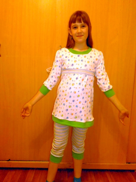Шитье одежды, выкройки, ремонт одежды, шторы, швейные машины (уже приобретенные)Заказ для девочки-домашняя пижамка. Выкройка Отто, конечно переделанная мною. Рост 146, хотя девочка 138. Интерлок и рибана. Низ не отпарен,меряла на свою дочку.